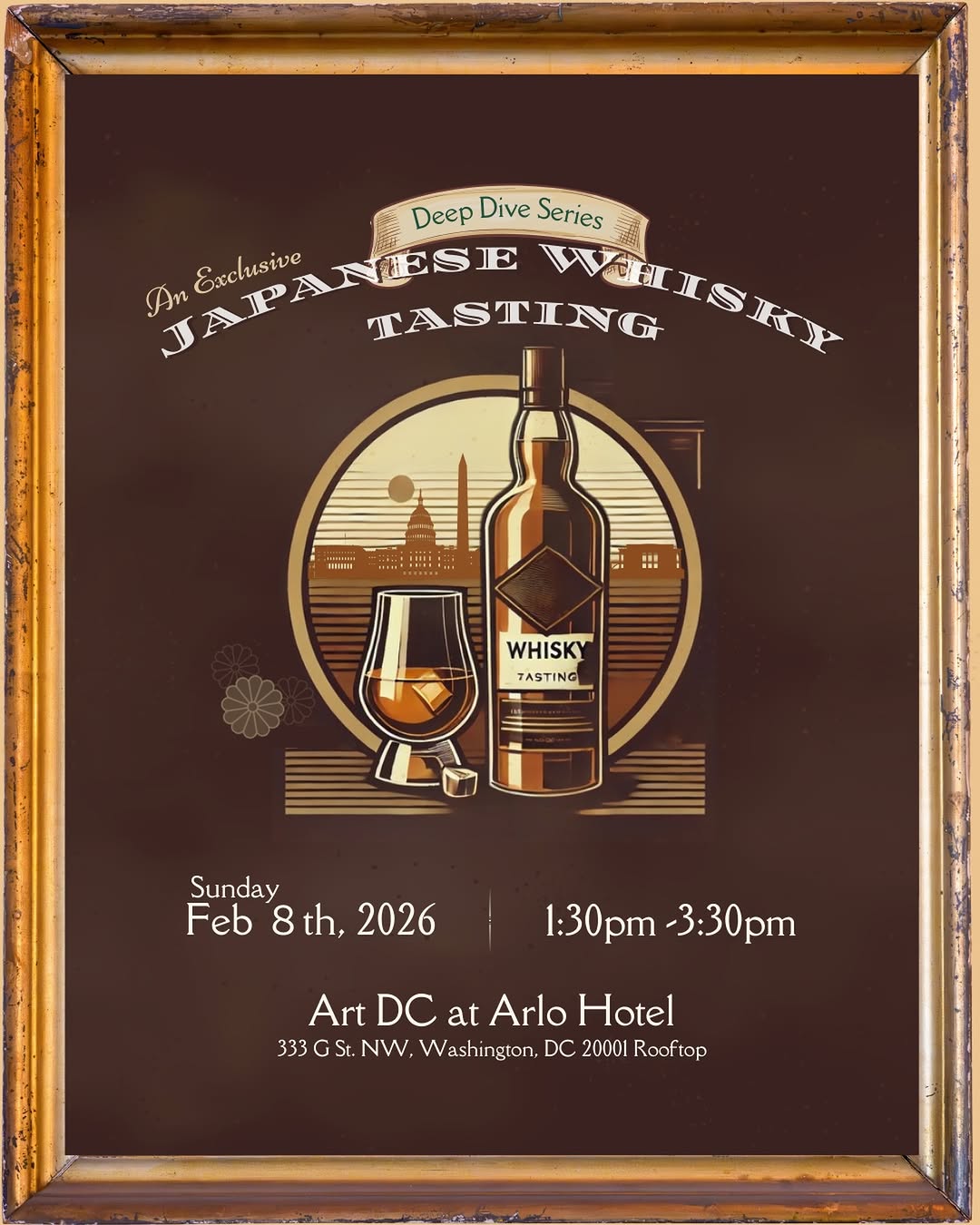 Art DC at Arlo Hotel 333 G Street Northwest, Washington, DC, USDelve into Japan's boutique whisky culture at this exclusive Deep Dive Series tasting event hosted by DC Sake cō. Guests will sample six rare Japanese whiskies and enjoy handcrafted desserts,...