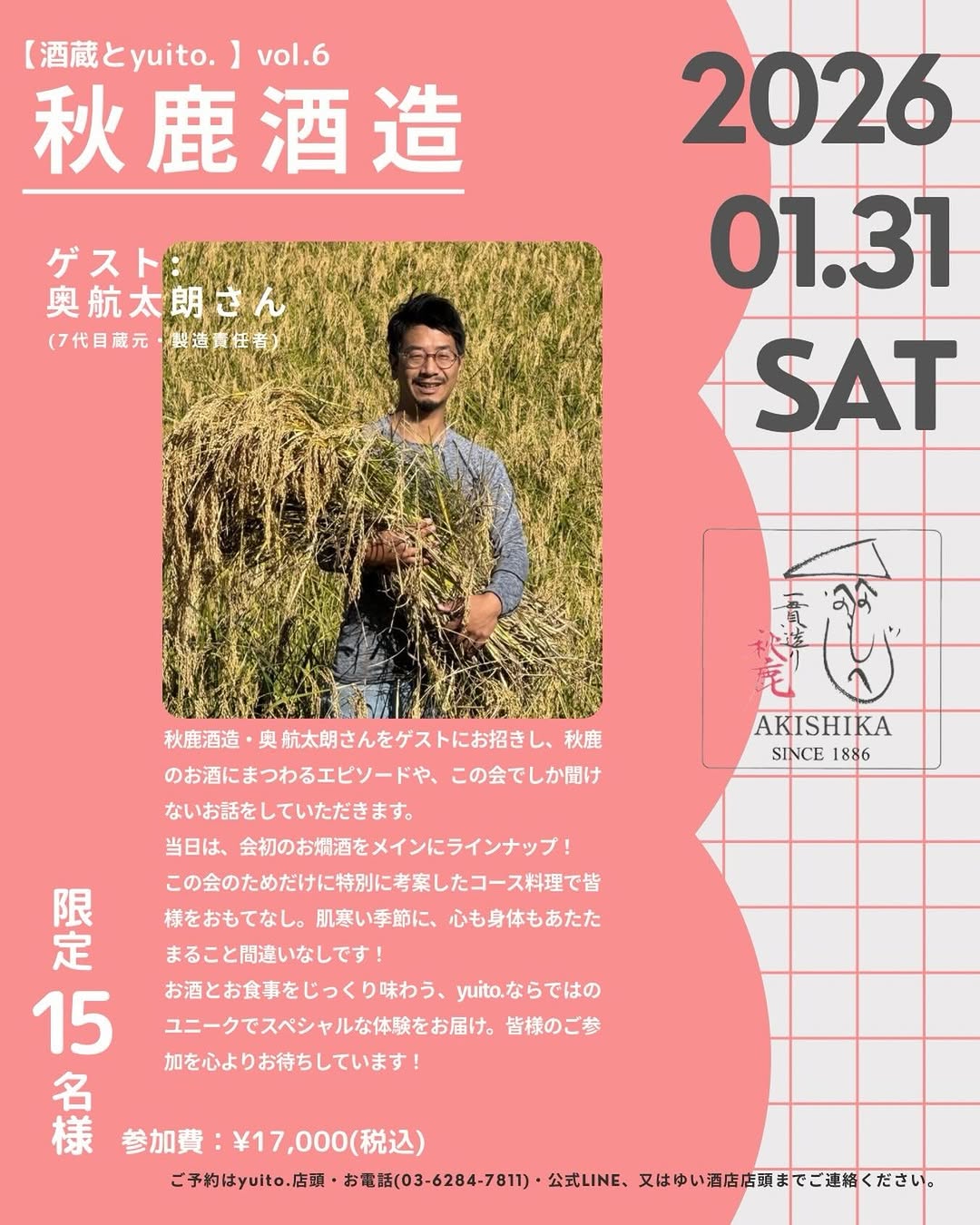 yuito. 2 Chome-4-3 Nihonbashimuromachi, Chuo City, Tokyo, JPAkishika Sake Brewery's seventh-generation brewer, Kotaro Oku, will be featured as a special guest, sharing unique stories and insights about Akishika sake. Guests will enjoy a specially curated course meal...