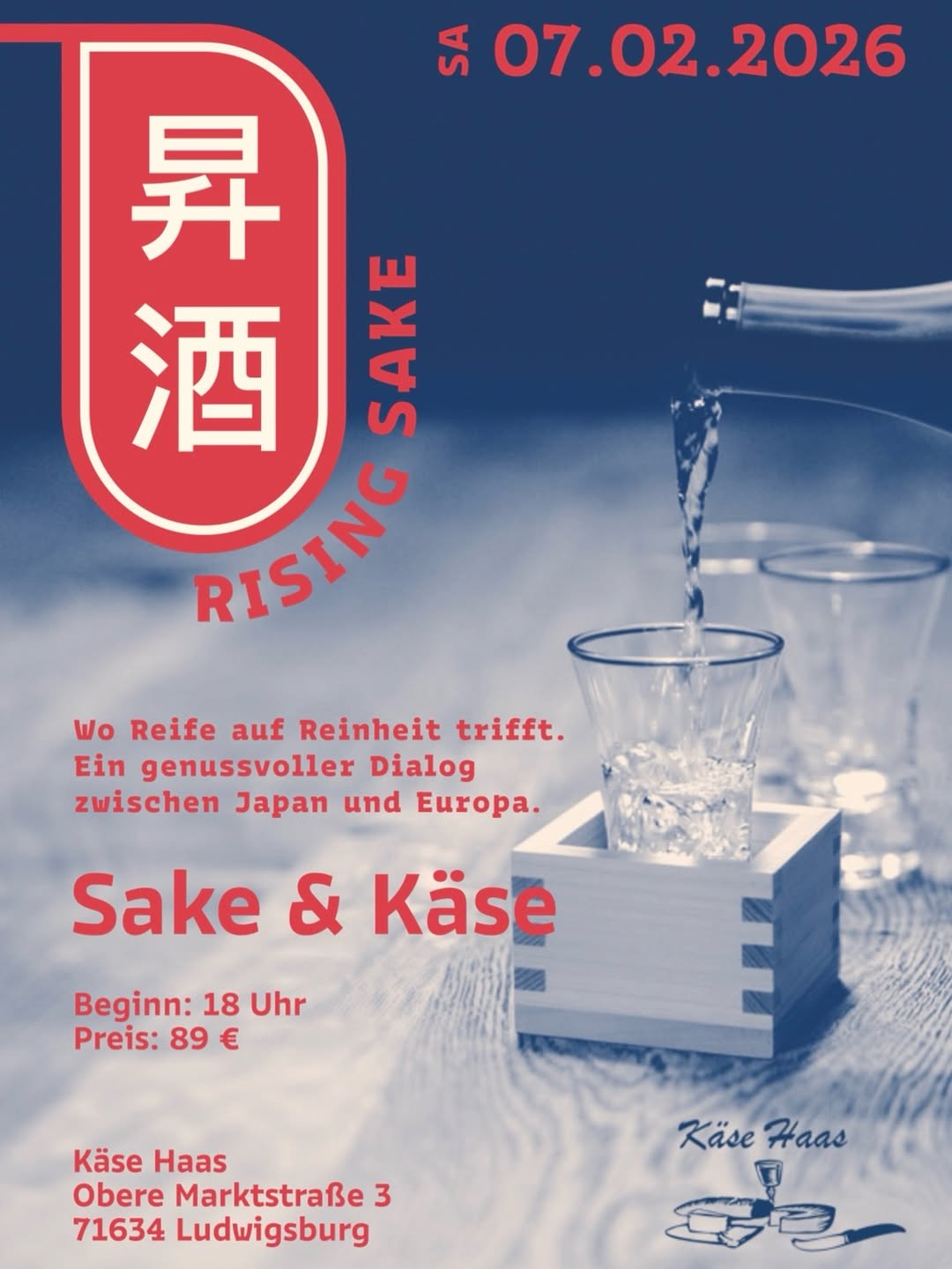 Käse Haas 3 Obere Marktstraße, Ludwigsburg, BW, DEExperience an exceptional evening of flavors as premium Japanese sake meets exquisite European cheeses at Käse Haas in Ludwigsburg. Enjoy a curated selection, precision-paired for a unique dialogue between Japan...