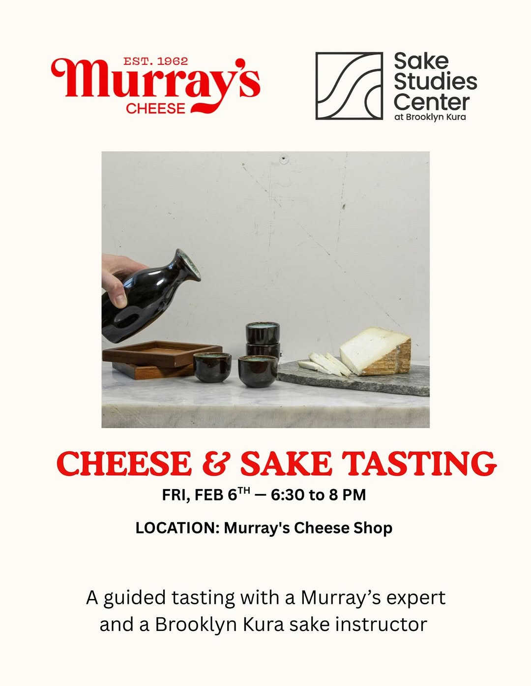 Murray's Cheese Shop 254 Bleecker Street, New York, NY, USExplore new flavor combinations at Murray’s Cheese & Sake Tasting, an event hosted at Murray's Cheese Shop in New York City. Experience a unique guided tasting led by a Murray’s...