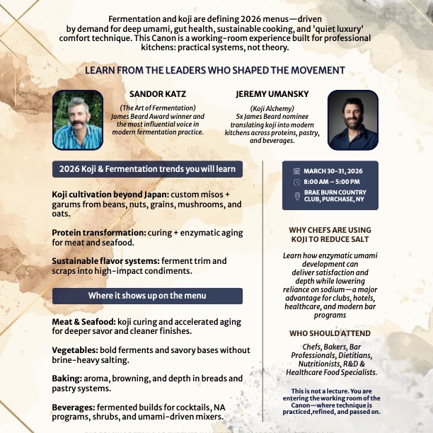 Cuisine University is hosting a two-day, hands-on Fermentation & Koji Event designed for culinary professionals serious about deepening skills in fermentation, flavor development, and sustainable cooking. Attendees will learn practical...