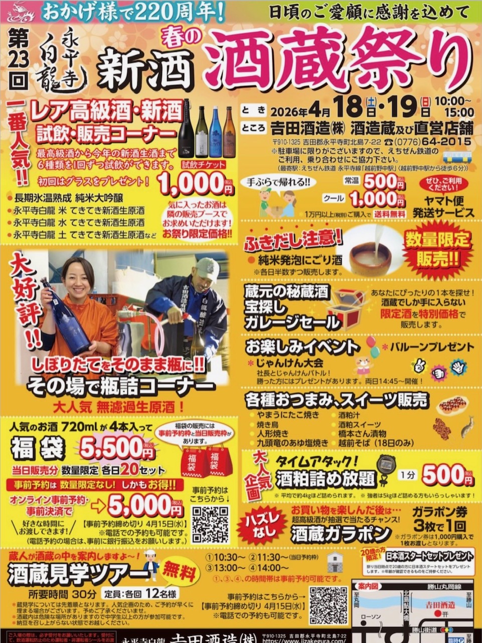 The Gozen Sake Festival returns for its 40th anniversary, celebrating the revival of the bodaimoto method and local sake traditions. Enjoy exclusive tastings, traditional entertainment, and a lively community atmosphere...