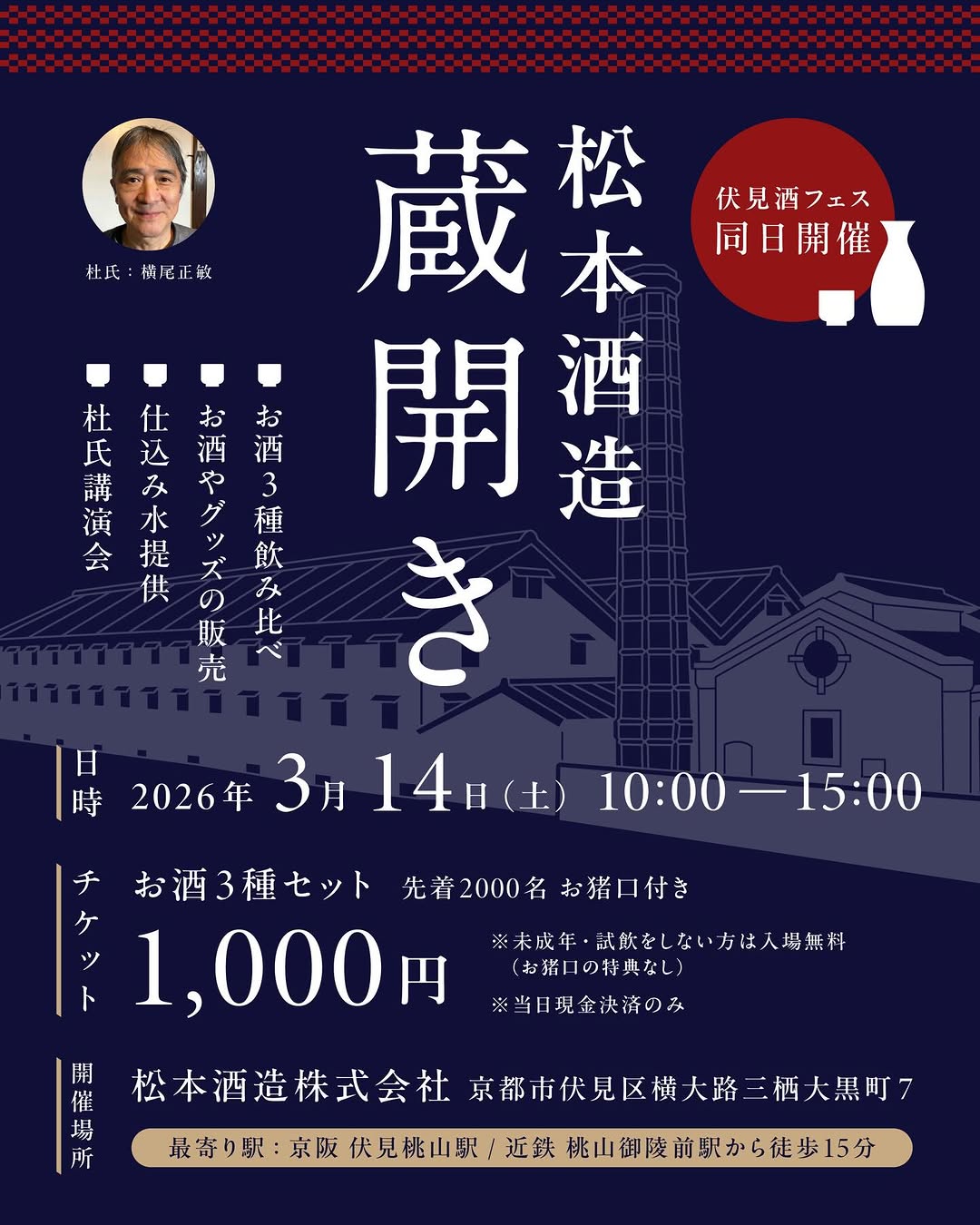 Mar 14 Fushimi Sake Fes. 2026 9:40 am - 5:20 pm Gekkeikan Showagura 247 Minamihamacho, Kyoto Event Details Get Directions