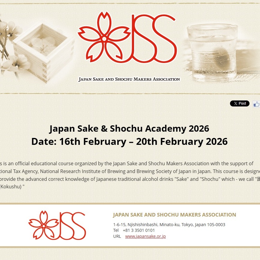 Feb 16 9:30 am - 5:00 pm Japan Sake & Shochu Academy 2026 (Day 1 of 5) The red brick brewhouse Japan, 〒103-0022 Tokyo, Chuo City, Nihonbashimuromachi, 3 Chome−2−1 コレド室町テラス 1F, Tokyo Event Details Get Directions