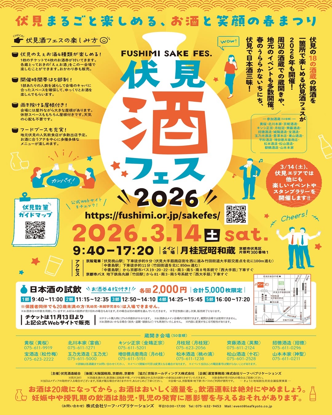 Mar 14 9:40 am - 5:20 pm Fushimi Sake Fes. 2026 Gekkeikan Showagura 247 Minamihamacho, Fushimi Ward, Kyoto, 612-8660, Japan, Kyoto Event Details Get Directions